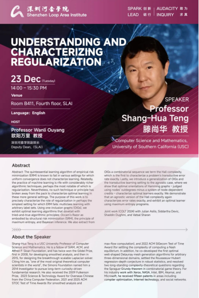 深圳河套学院有幸邀请到国际计算机理论领域泰斗、两届哥德尔奖得主、南加州大学计算机科学与数学系讲席教授滕尚华(Professor Shang-Hua Teng)于12月23日,亲临SLAI开设讲座,引领师生系统深入学习理论前沿,欢迎学院师生及对该领域感兴趣的产学研界同仁参与。