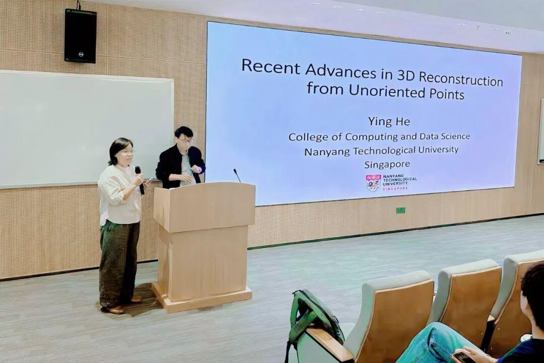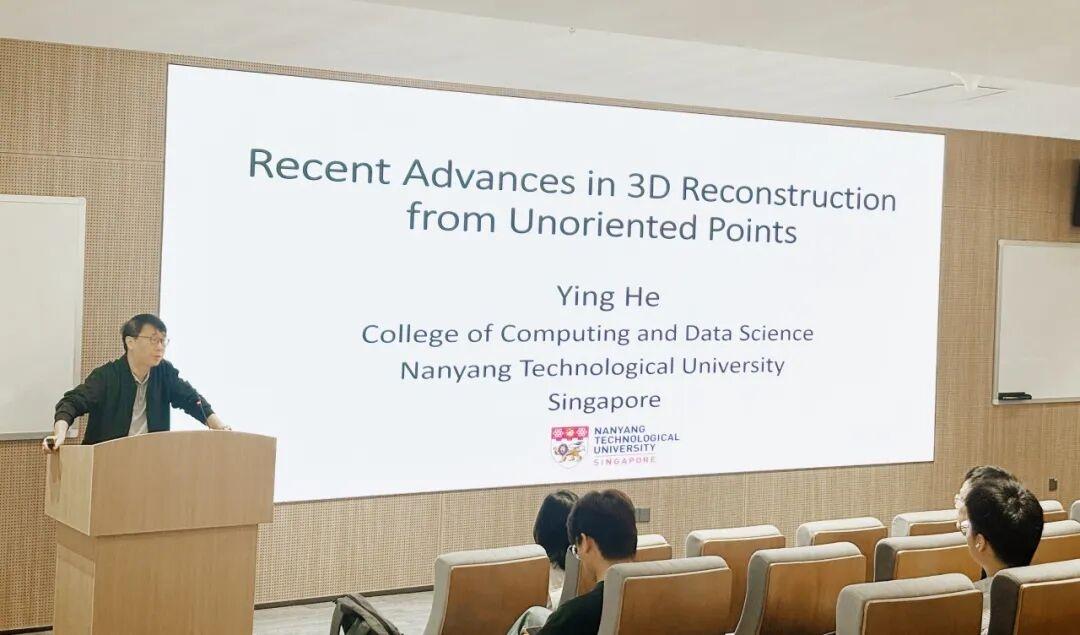 12月19日(周五)上午,SLAI Seminar第十六期学术讲座在深圳河套学院B411阶梯教室顺利举办。本次讲座由王智慧教授主持,特邀南洋理工大学计算机科学与数据科学学院贺英副教授,围绕“从无定向点云进行三维重建”主题,深入分享其在几何计算、隐函数建模与迭代优化方面的系列研究成果与前瞻思考。