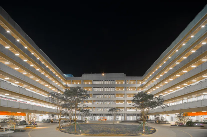 玻璃幕墙滤过朝暮天光,光影在实验室大厅的线条间缓缓流淌,将建筑的利落棱角,晕染成藏着巧思的诗行,每一寸空间都浸润着美学与理性的共生。