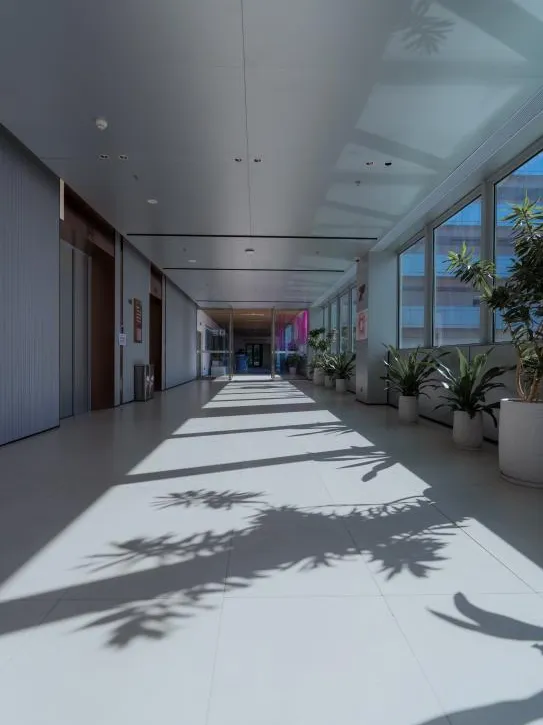 角落诗意:河套园区里的一草一木、光影交错、四季变迁(如走廊尽头的绿意、窗外流动的云霞)。