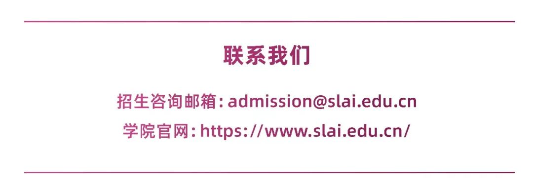 • 招生:admission@slai.edu.cn 教授招聘:FacultyHiring@slai.edu.cn 校企合作:coop@slai.edu.cn 人才招聘:staff_careers@slai.edu.cn 招投标:bidding@slai.edu.cn