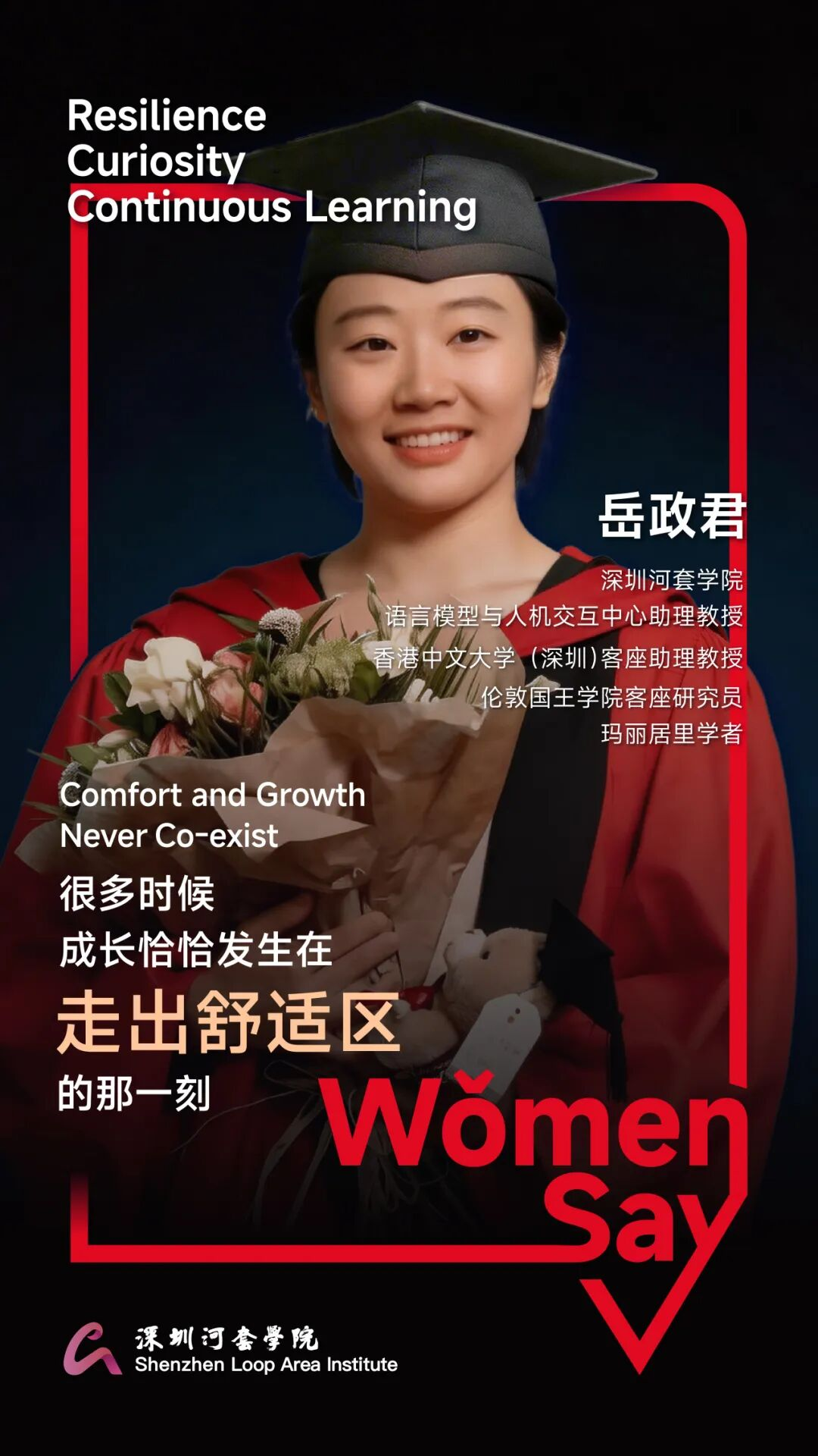 但科研之路从不是坦途,“韧性”始终是岳政君最鲜明的底色。她曾被一个突如其来的挑战困在一个“想解决却靠自己无法解决”的难题里,即使得到许多帮助,内心的困境仍只能独自穿越。那段经历让她明白,最终能把自己拉出低谷的,只有自己。给自己时间消化和调整,但不允许自己停在原地。“Comfort and growth never co-exist.(安逸与成长,从不并存。)”,真正的突破往往发生在走出舒适区的那一刻,这句话她既用来提醒自己,也用来鼓励身边人。