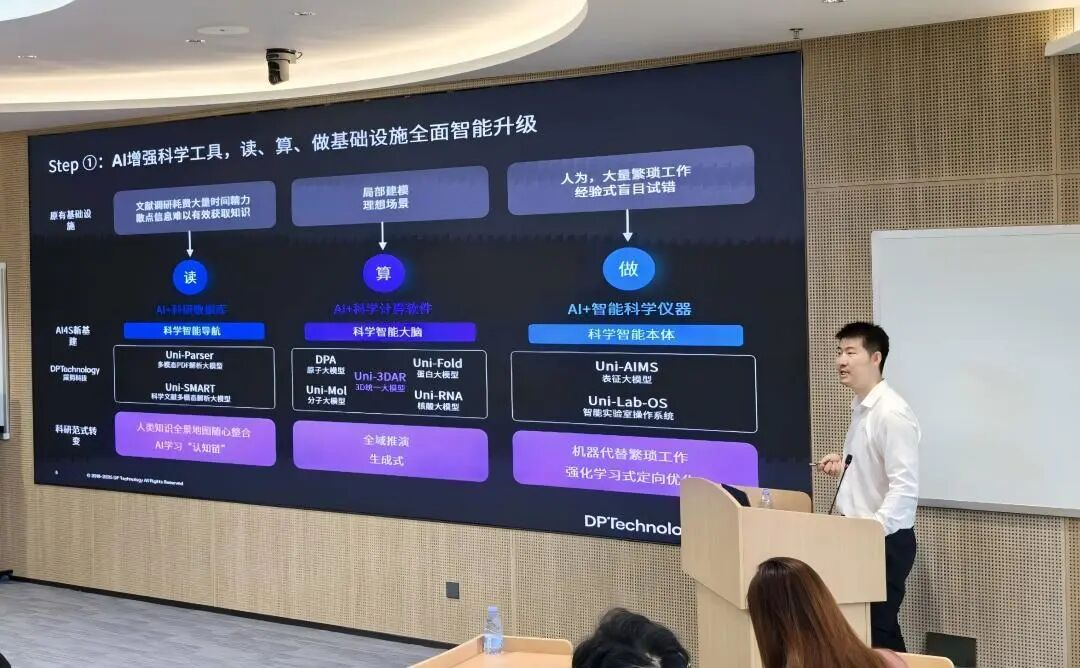 为彻底打通平台化科研的瓶颈,张林峰博士团队聚焦于全要素科学基础设施的建设,生动地将其概括为“读、算、做”三大维度的智能化重构。