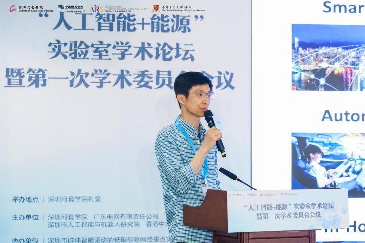 实验室联席主任、深圳河套学院双聘教授、香港中文大学(深圳)协理副校长、理工学院院长黄建伟教授回顾了实验室的建设历程。他指出,三方已有扎实的合作积累,包括国内首个多智能体协作省级AI调度员“明月”系统、人形机器人“知行者一号”等落地成果。实验室将充分利用广东电网的产业场景和深圳河套学院、AIRS的研究能力,构建“产学研用”深度融合的创新生态。